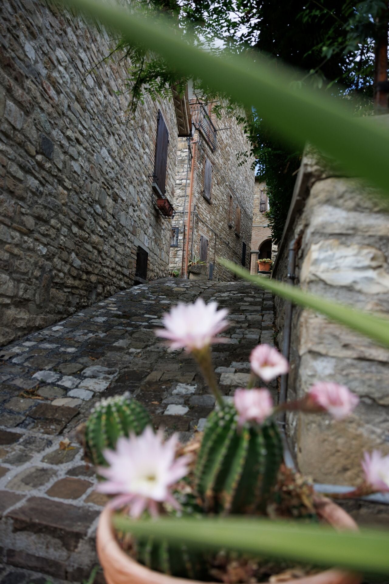 Il vicolo principale è una passeggiata nel tempo: fiori alle finestre, pietre che raccontano storie, il profilo della Torre Civica ricoperta d’edera, la chiesa dei Santi Pietro e Paolo, il Palazzo Vandini riconvertito in ristorante.
